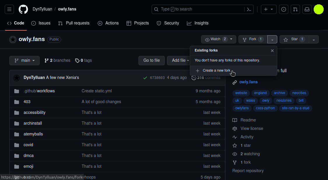 And boom. You now have your own version of the project. You can make your own changes to this and the original won't be affected at all. Think of it like printing a picture off of the Internet and drawing on it - the original won't change at all.